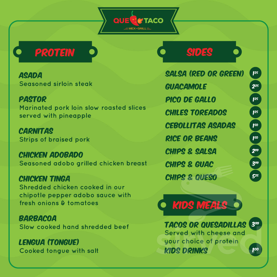 Welcome to Que Taco Savage, a vibrant culinary gem located in Savage, MN, where every bite tells a flavorful story. Specializing in birria dishes, this establishment offers a delightful all-day menu that features mouthwatering options like the Birria Torta, which comes with tender birria, cheese, and a rich consome soup. Don't miss the Pizza Birria, a creative twist with gooey cheese and handcrafted flour tortillas.